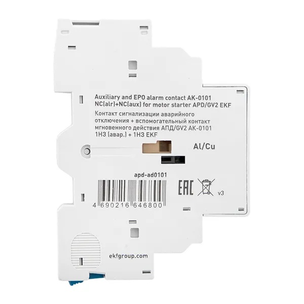 Аварийно-сигнальный блок контактов АК-0101 для автомата защиты и пуска электродвигателя АПД/GV2 ЭКФ PROxima 2NC apd-ad0101