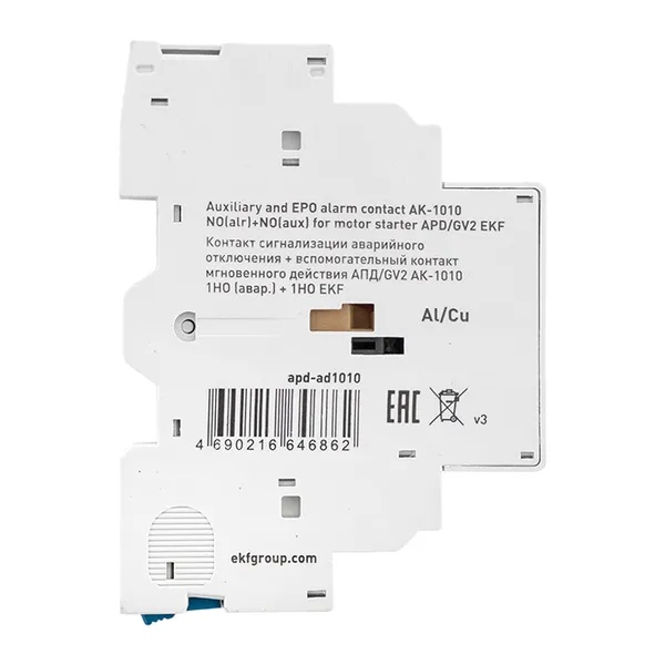 Аварийно-сигнальный блок контактов АК-1010 для автомата защиты и пуска электродвигателя АПД/GV2 ЭКФ PROxima 2NO apd-ad1010