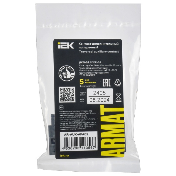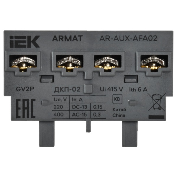 Дополнительный контакт для автоматического выключателя защиты двигателя серии ARMAT предназначен для управления и сигнализации цепей переменного тока при переключении состояния главных контактов. Изделие соответствует требованиям ТР ТС 004/2011.