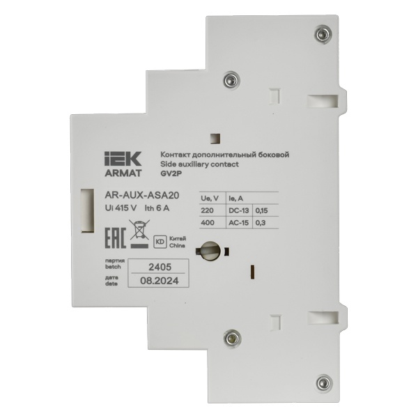 Дополнительный контакт для автоматического выключателя защиты двигателя серии ARMAT предназначен для управления и сигнализации цепей переменного тока при переключении состояния главных контактов. Изделие соответствует требованиям ТР ТС 004/2011.