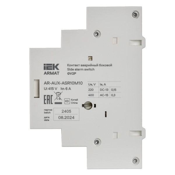 Дополнительный аварийный контакт для автоматического выключателя защиты двигателя серии ARMAT используется для индикации положения механизма взвода выключателя. Переключение контактов происходит исключительно при срабатывании выключателя от сверхтока. Устройство соответствует требованиям ТР ТС 004/2011.
