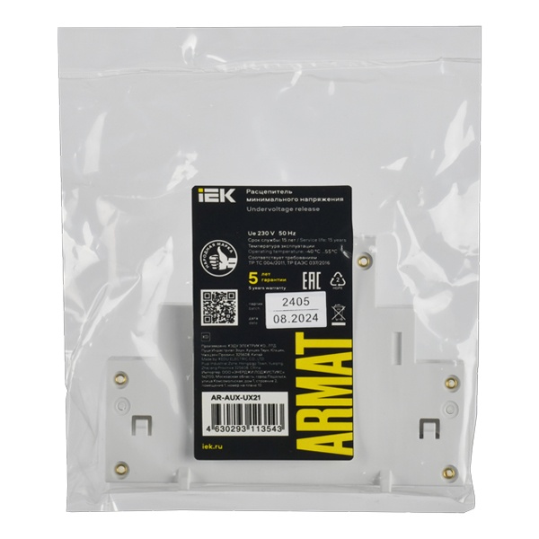 Расцепитель минимального напряжения для автоматических выключателей защиты двигателя серии ARMAT предназначен для отключения выключателя при критическом снижении напряжения в сети. Устройство соответствует требованиям ТР ТС 004/2011 и ТР ЕАЭС 037/2016. Обеспечивается безвинтовое крепление к автоматическим выключателям защиты двигателя типа GV2P серии ARMAT. Повышенная скорость реагирования.