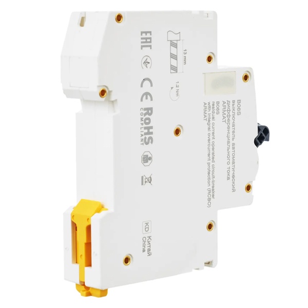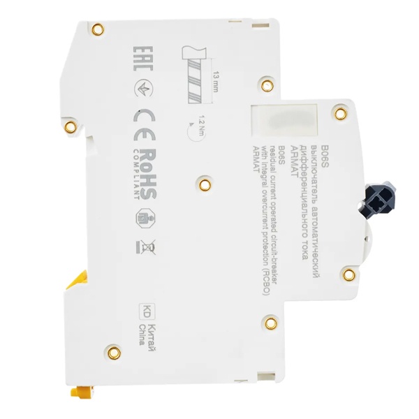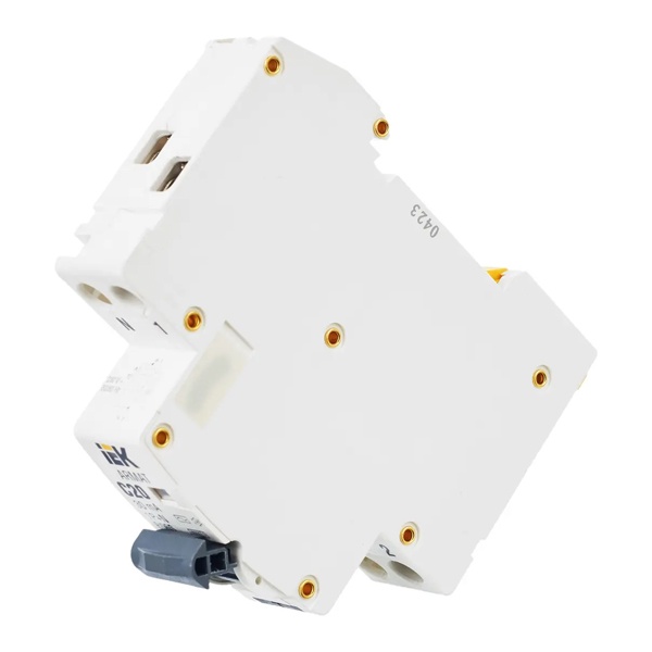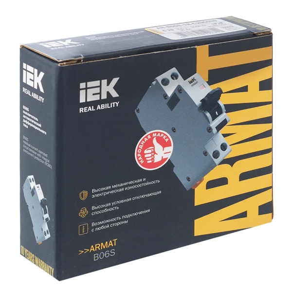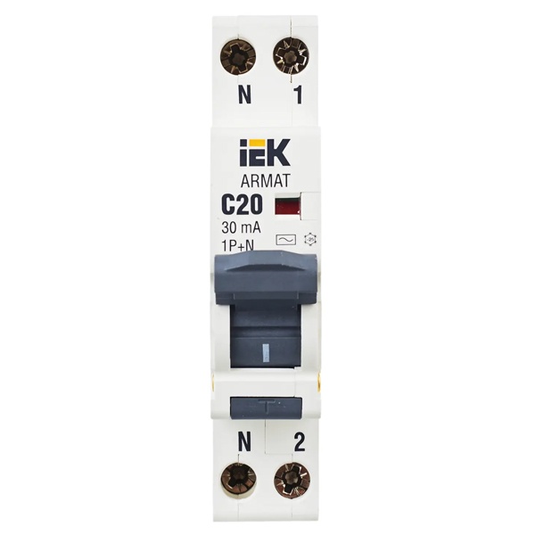 Дифференциальный автомат класса АС серии АРМАТ производства IEK представляет собой компактное устройство со встроенной защитой от сверхтоков. Оно применимо в однофазных электросетях переменного тока с частотой 50 Герц и напряжением до 230 Вольт. АВДТ выполняет функцию обнаружения дифференциального тока, сравнивает его со значением тока срабатывания и отключает защищаемую цепь, если дифференциальный ток превышает это значение. Также с помощью данного агрегата осуществляется автоотключение установки при возникновении КЗ и перегрузок. Дифавтомат защищает человека от поражения током и оборудование от пожара вследствие воздействия на них токов утечки. Данная модель рассчитана на номинальную нагрузку тока 20 Ампер при допустимом значении тока утечки – 30 милиампер. Она обладает высокой коммутационной способностью 6000 Ампер и характеризуется уставкой типа C. АВДТ реагирует на чистый синусоидальный переменный ток утечки. Он обладает шириной 1 модуль, имеет 2 полюса: 1P+N и монтируется на дин-рейку. Агрегат оснащен удобным рычагом управления с индикацией срабатывания по току утечки, тока короткого замыкания и в случае перегрузки. Кнопка «Тест» позволяет следить за работоспособностью устройства. Срок службы достигает 15 лет.