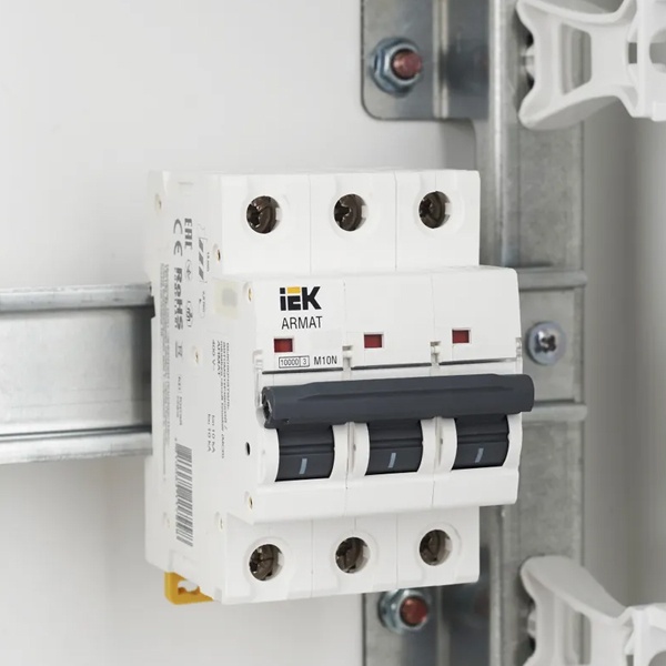 Известный производитель IEK представляет линейку модульного оборудования Armat, к которой относятся автоматы серии M10N с характеристикой срабатывания С. Данная модель представляет собой компактный автоматический выключатель шириной 3 модуля. Областью применения являются распределительные щиты многоквартирных домов, промышленных объектов и коммерческих зданий. Основная функция выключателя состоит в автоматическом отключении цепей при возникновении сверхтоков: короткого замыкания или токов перегрузки. Соответственно, он обеспечивает защиту электросетей от возможного перегрева. Токоограничивающее устройство с уставкой типа С имеет 3 полюса и рассчитано на напряжение сети переменного тока 230/400 Вольт. Оно подходит для стандартной защиты цепи освещения и бытовой техники. Номинальный ток составляет 3 Ампера. Отключающая возможность соответствует 10 килоампер. Это сила тока КЗ, при которой оборудование может многократно отключаться, не выходя из строя. Данный показатель свидетельствует о надежности аппарата и гарантирует его долгий срок службы. Механическая износостойкость составляет 20 тысяч циклов, коммутационная – 10 тысяч циклов. Внешне автомат заключен в корпус из качественного полиамида. На лицевой стороне присутствует удобный рычаг управления и окошко состояния контактов. Подключение дополнительных устройств защищено пластиковыми заглушками, предотвращая попадание пыли. Подвод питания производится с любой стороны. Для маркировки предусмотрена площадка с прозрачной крышкой. Габаритные параметры автомата: 54х85х70 мм.