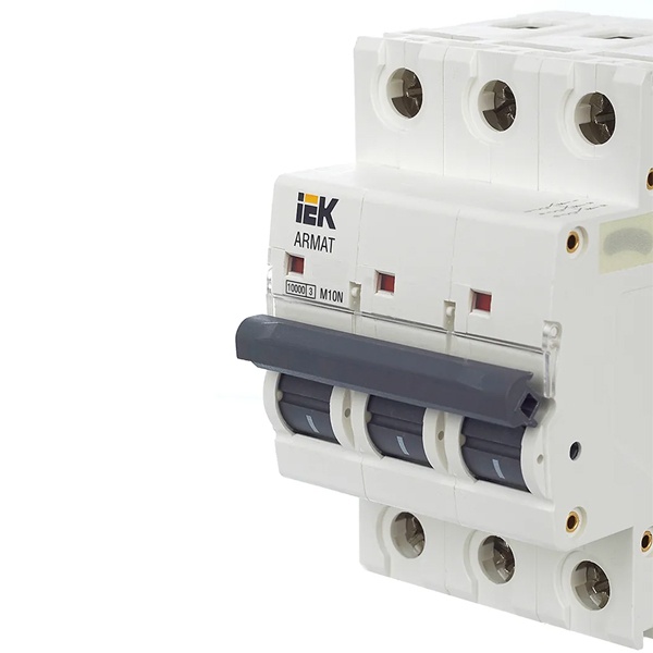 Модель автоматического выключателя M10N производства известной компании IEK относится к серии модульных агрегатов ARMAT. Это надежный, безопасный, компактный аппарат с высокой скоростью срабатывания, который служит для коммутации электрических цепей с напряжением 400 Вольт в сети переменного тока. Он обладает защитной характеристикой типа С и используется для стандартной защиты цепей розеток и освещения. Отключающая возможность составляет 10 килоампер, это высокий показатель, который гарантирует долгий срок службы устройства. Основная функция автомата состоит в защите цепи от короткого замыкания или токов перегрузки. Токоограничивающее устройство имеет 3 полюса и рассчитано на нагрузку тока в 16 Ампер. Сферой использования выступают распределительные щиты многоквартирных или частных домов, промышленных зданий и мест общественного назначения. Крепится прибор на монтажную DIN-рейку и фиксируется в двух местах с помощью защелки. Подключение допустимо с любой стороны. Лицевая панель имеет поле для маркировки с прозрачной крышкой, окошко состояния контактов и эргономичную рукоять управления с двумя положениями: I/O (включено/отключено). Прочный монолитный корпус изготовлен из качественного пластика. Механическая износостойкость составляет 20 000 циклов, коммутационная – 10 000 циклов. Параметры автомата: 54х85х70 мм.