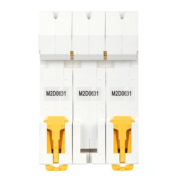 Линейка автоматических выключателей АРМАТ от производителя IEK представляет модель устройства модульного типа M10N. Компактный автомат с шириной 3 модуля крепится на din-рейку с помощью защелок и монтируется в распределительные щиты многоквартирных и частных домов, торговых объектов и мест общественного назначения. Его функция состоит в автоматическом отключении цепей при возникновении сверхтоков: короткого замыкания или перегрузок. Выключатель коммутирует и защищает электроустановки низкого напряжения, чем обеспечивает их бесперебойную работу. Он проводит ток в нормальном режиме и отключает нагрузку в случае возникновения аварийной ситуации. Аппарат имеет 3 полюса и рассчитан на номинальную токовую нагрузку до 2 Ампер. Его отключающая способность составляет 10 килоампер при допустимом рабочем напряжении сети 400 Вольт переменного тока. Аппарат относится к устройствам с характеристикой срабатывания D и применяется для защиты цепи, в которую подключены трансформаторы, электромоторы и т.п. Он обладает долгим сроком службы и является надежным агрегатом. Сплошная лицевая панель повышает безопасность использования. Присутствует рычаг ручного управления с поперечной планкой в 2 положениях: I/O (включено/отключено), а также окно состояния контактов и площадка для маркировки с прозрачной крышкой. Параметры: 54х85х70 мм.