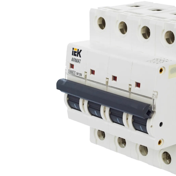 Модель автоматического выключателя M10N производства известной компании IEK относится к серии модульных агрегатов ARMAT. Это надежный, безопасный, компактный аппарат с высокой скоростью срабатывания, который служит для коммутации электрических цепей с напряжением 400 Вольт в сети переменного тока. Он обладает защитной характеристикой типа С и используется для стандартной защиты цепей розеток и освещения. Отключающая возможность составляет 10 килоампер, это высокий показатель, который гарантирует долгий срок службы устройства. Основная функция автомата состоит в защите цепи от короткого замыкания или токов перегрузки. Токоограничивающее устройство имеет 4 полюса и рассчитано на нагрузку тока в 2 Ампера. Сферой использования выступают распределительные щиты многоквартирных или частных домов, промышленных зданий и мест общественного назначения. Крепится прибор на монтажную DIN-рейку и фиксируется в двух местах с помощью защелки. Подключение допустимо с любой стороны. Лицевая панель имеет поле для маркировки с прозрачной крышкой, окошко состояния контактов и эргономичную рукоять управления с двумя положениями: I/O (включено/отключено). Прочный монолитный корпус изготовлен из качественного пластика. Механическая износостойкость составляет 20 000 циклов, коммутационная – 10 000 циклов. Параметры автомата: 72х85х70 мм.