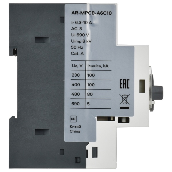 Трехполюсный электрический автомат защиты и пуска двигателя GV2P на дин рейку, ток уставки 6,3-10 A AR-MPCB-A6C10