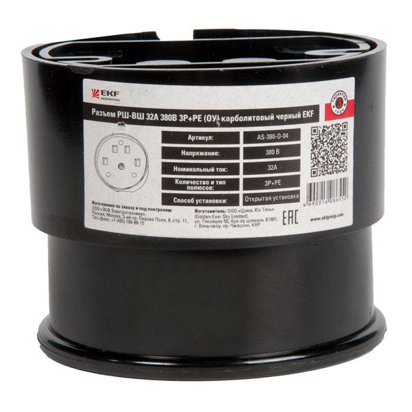Разъем 1-м ОП РШ-ВШ 32А IP20 3P+PE 380В карболит. черн. PROxima EKF AS-380-O-04