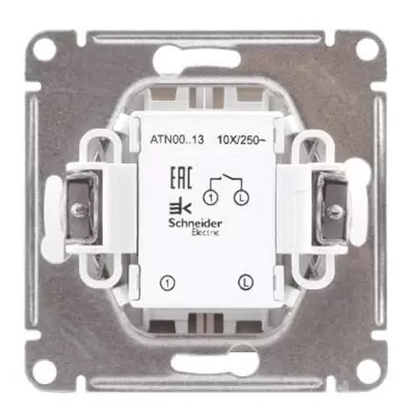 Подсветка выключателя – этот, по сути, незначительный элемент ощутимо улучшает удобство пользования. Одноклавишный выключатель с подсветкой входит в серийную линейку основных механизмов и аксессуаров AtlasDesign SE.Белая съемная клавиша строгими линиями подчеркивает классический стиль дизайна интерьера. Унифицированный пластикат, используемый для производства декоративных деталей серии, устойчив: к механическому истиранию поверхности; воздействию высоких температур и прямых солнечных лучей. Полимер не только экологически безопасен, но и обладает бактерицидными свойствами.В контактный сплав входит определенный процент серебра, что значительно улучшает электрическую проводимость соединений. Надежность проводниковых включений обеспечивается винтовыми зажимами. Ограничения силовых токовых характеристик механизма – 10 Ампер.Рабочая установка скрытая. Постовой монтаж – в пластиковый подрозетник на лапки винтовых разжимов, суппортный на анкера.