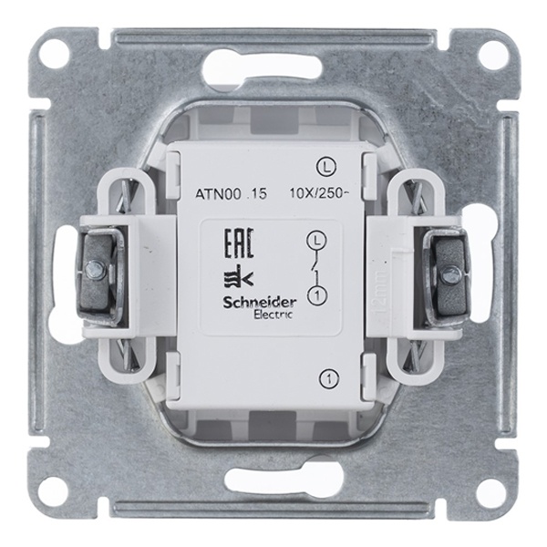 Механизм включения-выключения электроприборов путем нажатия входит в серийную линейку AtlasDesign SE. Кнопочное устройство управления оснащено съемной накладкой белого цвета, выполненной в классическом формате правильного четырехугольника.Накладка изготовлена из экологически чистого полимера, химически инертного, устойчивого к длительному воздействию прямых солнечных лучей. Поверхность, глянцевая, обладает антибактериальными свойствами.Механизм оснащен контактными группами из металлических сплавов с высоким уровнем электрической проводимости. Проводниковые приемники снабжены надежными винтовыми зажимами. Номинальные силовые токовые характеристики электрической цепи подключения – 10 Ампер.Формы конструкции механизма предполагают скрытый монтаж в объемы монолитных и каркасных стен. Постовая установка предусматривается разжимным винтовым устройством и перфорацией суппорта – анкерный крепеж.
