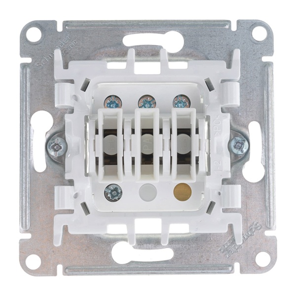 Выключатель трехклавишный – компактный электрический механизм, позволяющий осуществлять управление несколькими световыми приборами из одной точки. Изделие входит в серийную линейку AtlasDesign SE. Интерьерный дизайн построен на элементах классического стиля – четкие линии прямоугольных клавишных накладок, плюс белый цвет, используемый в оформлении. Клавиши, съемные, изготовлены из полимера категории термопластов, не выделяющего в окружающую атмосферу вредных веществ, обладающего бактерицидным действием.Все группы контактов механизма производятся из сплава металлов, с улучшенными характеристиками токовой проводимости. Надежное соединение с входящими проводниками обеспечивается винтовыми зажимами. Механизм оснащен суппортной пластиной для установки рамки (защелкиванием). Отверстия в суппорте облегчают организацию правильного положения механизма при встроенном постовом монтаже. Для скрытой установки в монолитный объем рабочее место оснащается пластиковым подрозетником, в котором механизм выключателя фиксируется лапками разжимного устройства.