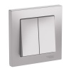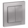 Съемная клавиша механизма выполнена их унифицированного пластиката, с характеристиками повышенной прочности и экологической безопасности. Квадрат накладки цвета – алюминий предполагает использование выключателя в современном стилевом дизайне интерьеров, исключающем всякие излишества.Сплав для контактных групп сочетает высокую марку стали и добавки никеля и серебра, что способствует лучшей электрической проводимости соединений, которые, в свою очередь, фиксируются надежными винтовыми зажимами.