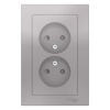 Розетка двойная SE AtlasDesign (в сборе, цвет алюминий) с заземлением и шторками подходит для сетей 250 В, на ток 16 А.- Заземляющий контакт обеспечивает дополнительную защиту от удара электрическим током.- Лицевые детали из качественного ABS-пластика, устойчивого к царапинам и УФ-излучению.- Двойная розетка позволяет подключить два устройства в одном месте.- Изделие поставляется в комплекте с рамкой того же цвета.