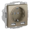 Розетка двойная SE AtlasDesign (в сборе, цвет шампань) со шторками подходит для сетей 250 В, на ток 16 А. Пластик с ионами серебра обеспечивает антибактериальный эффект. Лицевые детали из качественного ABS-пластика, устойчивого к царапинам и УФ-излучению. Двойная розетка позволяет подключить два устройства в одном месте. Изделие поставляется в комплекте с рамкой того же цвета.
