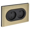Розетка двойная SE AtlasDesign (в сборе, цвет шампань) с заземлением и шторками, со сдвижными крышками подходит для сетей 250 В, на ток 16 А.- Заземляющий контакт обеспечивает дополнительную защиту от удара электрическим током.- Специальная монтажная коробка входит в комплект.- При закрытых крышках розетка смотрится очень стильно и практически незаметна в интерьере.- Это самая плоская розетка в своем сегменте – она практически сливается со стеной.