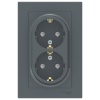 Оснащение лицевых панелей розеток шторками защищает силовые контактные вводы от попадания случайных брызг и твердых частиц. Шторки не только оберегают электрический механизм от преждевременного выхода из строя, но и защищают людей от случайных соприкосновений с токопроводящими частями устройства.Предлагаемое изделие входит в серийный ряд аналогичных устройств Атлас Дизайн. Розетка адаптирована к общей сети переменного тока, с напряжением 220 Вольт и номинальным значением силы рабочих токовых скачков до 16 Ампер.Стиль экстерьерного исполнения – смешение «техно» и «хай тек». Простота и геометрическая четкость линий накладки дополнена стальным оттенком грифеля. Передняя панель съемная, на винтовом креплении, изготовлена из пластиката с улучшенными характеристиками прочности и термостойкости. Глянцевая поверхность не теряет фактуры под воздействием прямых лучей солнца и обладает антибактериальными свойствами.Конструкция розетки предусматривает скрытое монтажное исполнение в монолитные и пустотные объемы стен и перегородок. Постовая установка производится в подрозетник на лапки винтового разжимного механизма.