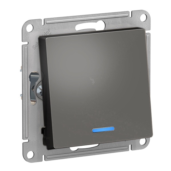 Механизм SE AtlasDesign (цвет сталь) выключателя 1-клавишного с подсветкой подходит для сетей 250 В, на ток 10 А.- Благодаря светодиодной подсветке синего цвета изделие легко найти в темноте.- Лицевые детали из качественного ABS-пластика, устойчивого к царапинам и УФ-излучению.- Усиленные прямые монтажные лапки для лучшей фиксации механизма в монтажной коробке.