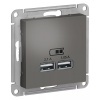 Розетка SE AtlasDesign (цвет сталь) двойная USB с разъемами типа A+C - Лицевые детали из качественного ABS-пластика, устойчивого к царапинам и УФ-излучению.- Самая современная USB-зарядка с двумя разъемами позволяет заряжать как стандартные мобильные устройства через разъем типа А, так и новейшии устройства, в том числе ноутбуки, с разъемом типа С.