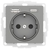 Встраиваемая электрическая силовая розетка с заземлением стального цвета, пружинные клеммы, АтласДизайн ATN000943S