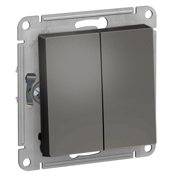 ATN000951S Двухклавишный выключатель SE AtlasDesign 10A быстрозажимные клеммы, сталь [уп 5 шт]