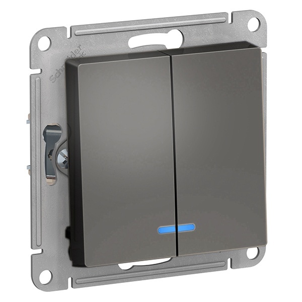 ATN000953S Двухклавишный выключатель с подсветкой SE AtlasDesign 10A быстрозажимные клеммы, сталь [уп 5 шт]