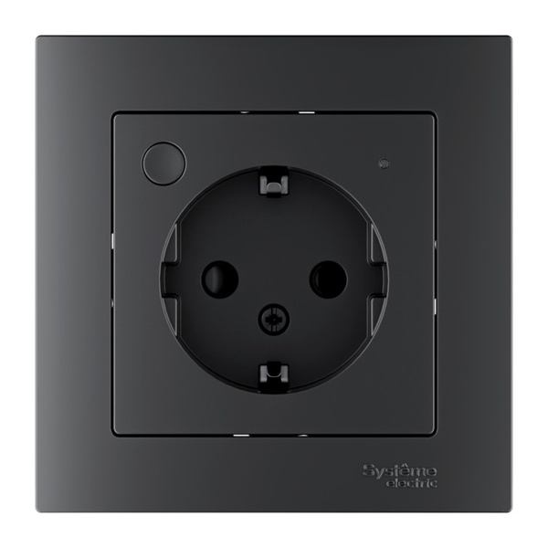 Электрическая SMART розетка скрытой установки со шторками, цвета карбон ATN001045Z