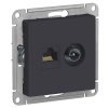 Механизм SE AtlasDesign (цвет карбон) розетки компьютерной с разъёмом RJ45 категория 5е предназначен для удобного и быстрого подключения вашего компьютера к локальной вычислительной сети.- Лицевые детали из качественного ABS-пластика, устойчивого к царапинам и УФ-излучению.- Благодаря покрытию «soft touch» к изделию приятно прикасаться.- Усиленные прямые монтажные лапки для лучшей фиксации механизма в монтажной коробке.