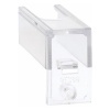 Скрытый монтаж розетки предполагает установку в монолитные и каркасные конструкции стен помещений. Постовой крепеж возможен с использованием регулируемого механизма с разжимными лапками - в подрозетник, и непосредственно на рабочую плоскость – винтами через перфорацию в суппорте.