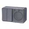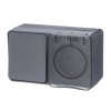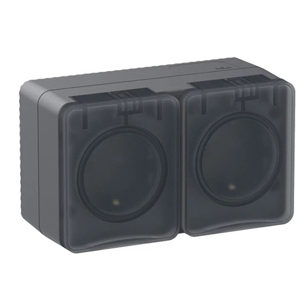 Моноблок из двух влагозащищенных розеток с заземлением и защитными шторками накладного исполнения цвета антрацит с прозрачной крышкой, 230 Вольт 16А, AtlasDesign Profi54. ATN544026