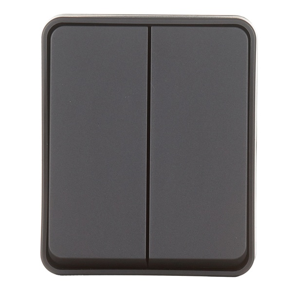 Выключатель 2-клавишный для открытого монтажа.