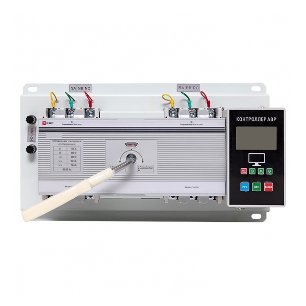 При возникновении аварийных ситуаций, которые случаются при коротких замыканиях или перегрузках линий, необходимо обеспечить защиту и бесперебойную работу оборудования на объектах коммерческого, промышленного и бытового назначения. Устройство автоматического ввода резерва серии ТСМ от известного производителя EKF справляется с данной задачей, а также обеспечивает подачу запасного электроснабжения при отсутствии напряжения на основной электроцепи. Аппарат представляет собой моноблок, который состоит из контактного блока, блока управления и двух автоматических силовых выключателей в литом корпусе. Он рассчитан на номинальную токовую нагрузку до 125 Ампер при напряжении сети 400 Вольт. Максимальная отключающая способность составляет 35 кАмпер. Особенностью устройства является ручной или дистанционный режим управления, настраиваемый интеллектуальным контроллером. Компактный прибор с термомагнитным расцепителем обладает механической износостойкостью до 6000 циклов и продолжительным сроком службы до 10 лет. Корпус обеспечивает защиту от пыли и влаги IP30 и предполагает размещение устройства во влагозащищенных местах. В комплект поставки входит паспорт, набор метизов, рукоятка для взвода и колодка для подключения контрольных проводников.