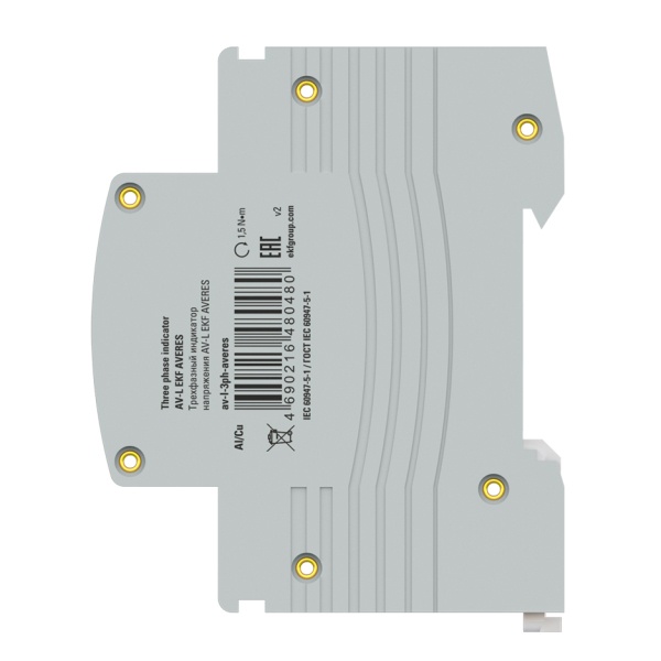 Модель EKF серии AVERES с LED-индикацией рассчитана на работу в диапазоне 180–260 В AC и подходит для применения в стандартных сетях переменного тока, где требуется надежная и наглядная индикация состояния фаз.