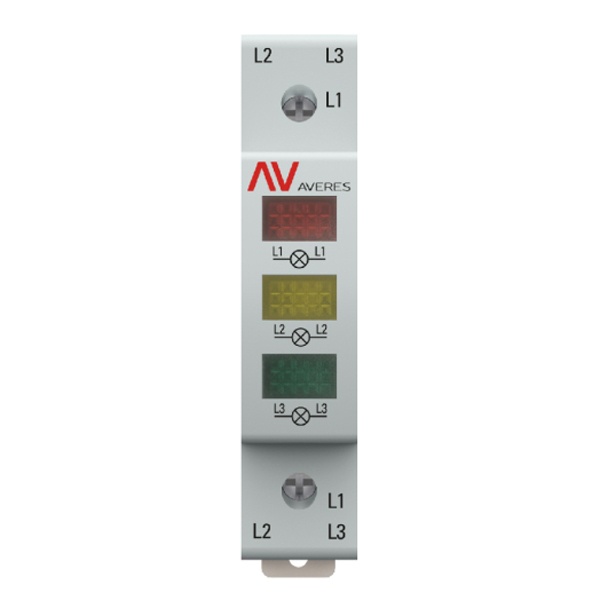 Индикатор напряжения трехфазный EKF AV-L LED 180-260В AC AVERES — светодиодный индикатор наличия напряжения для трехфазных электрических сетей. Устройство предназначено для визуального контроля присутствия напряжения по каждой фазе, что упрощает диагностику и повышает удобство обслуживания электрощитов, распределительных устройств и шкафов автоматики.