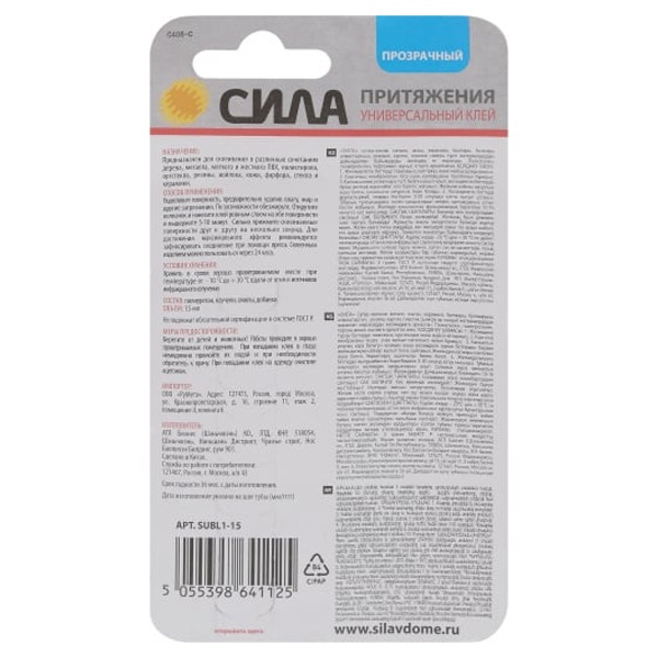 Клей универсальный 15мл прозр. (блист.1шт) СИЛА Б0002919