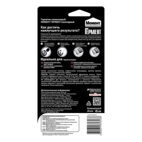 Высококачественный силиконовый Санитарный герметик Момент для ванной и кухни идеален для герметизации и заполнения швов и стыков в помещениях с повышенной влажностью.