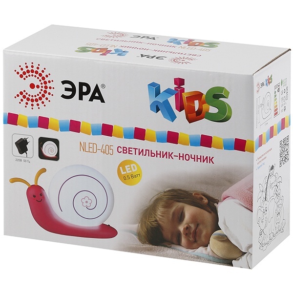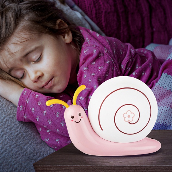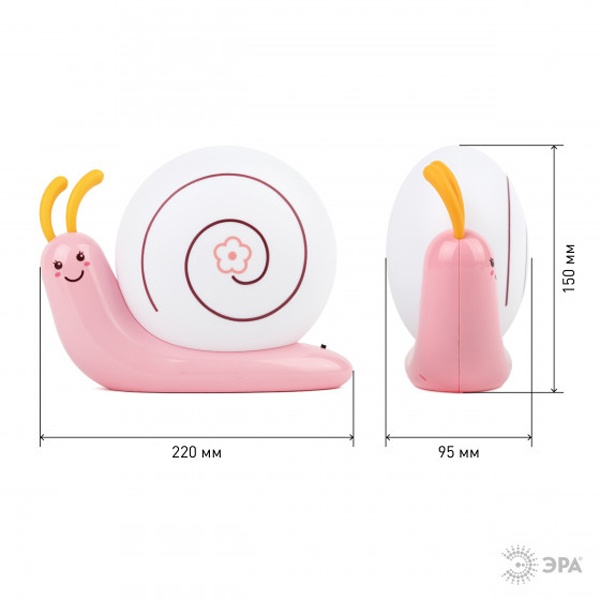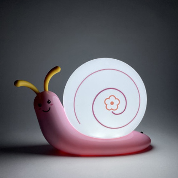 Светильник-ночник со светодиодами (LED) в качестве источников света. Встроенный аккумулятор для автономной работы. Сетевой адаптер в комплекте. Светильник работает во время зарядки от сети. Детский дизайн в виде улитки с поворачивающимися "рожками".