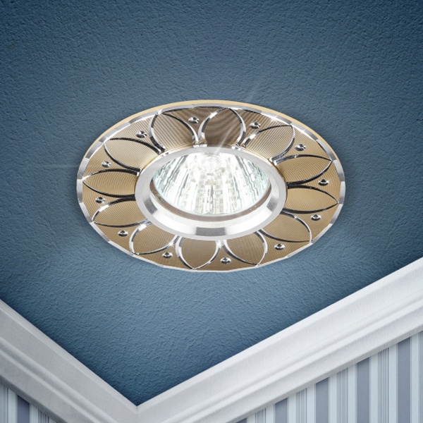 Встраиваемый литой точечный алюминиевый светильник Эра модель KL42 цвет золото/серебро, цоколь MR16 12Вольт/230Вольт Б0003848