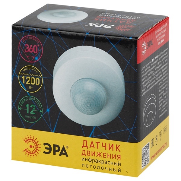 Датчик движения ЭРА MD 06 потолочный 1200Вт, 12м (50/1500)