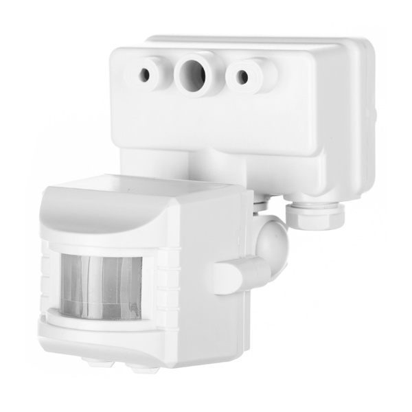 Данный датчик движения крепится к прожектору и применяется для автоматического включения и выключения освещения на территории загородного участка, в темных производственных помещениях, на лестничных клетках. Устройство обнаруживает движение в сенсорной зоне (5-12 метров в зависимости от индивидуальных настроек) – и автоматически включает свет. Угол обзора – 120 градусов. Мощность – 1200 Вт. Имеется возможность регулировки времени задержки выключения (от 10 секунд до 7 минут) и настройки чувствительности к внешнему освещению, что позволяет значительно снизить потребление электроэнергии. Датчик движения экономит денежные средства и упрощает быт. Его можно применять как в помещениях, так и снаружи, благодаря защите от пыли и влаги (индекс защиты оболочки корпуса по международной классификации – IP44).
