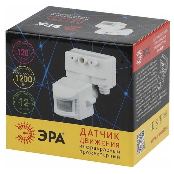 Датчик движения ЭРА MD 02 прожекторный 1200Вт, IP-44, 12м (60/480)