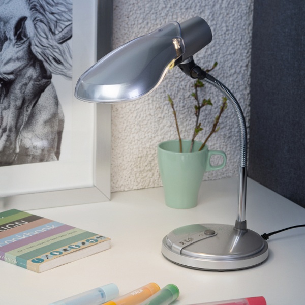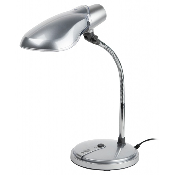 Настольная лампа ЭРА с цоколем Е27 под энергосберегающую лампу, цвет серебро. Б0004463