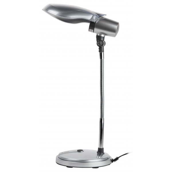 Светильник предназначен для использования с компактной люминесцентной лампой (КЛЛ), которая обеспечивает экономию электроэнергии до 70%. Максимальная мощность лампы мощность 15W, максимальный диаметр 42 мм, цоколь E27.Устойчивое металлическое основание. Выключатель на основании светильника. Направление света регулируется несколькими способами для максимального комфорта: гибкая стойка наклоняется в любую сторону, регулируется наклон плафона, его положение фиксируется с помощью винта, направление света регулируется вращением плафона вокруг основания с цоколем. Современный дизайн, яркие цвета. Лампа в комплект не входит, использование ламп накаливания не допускается.