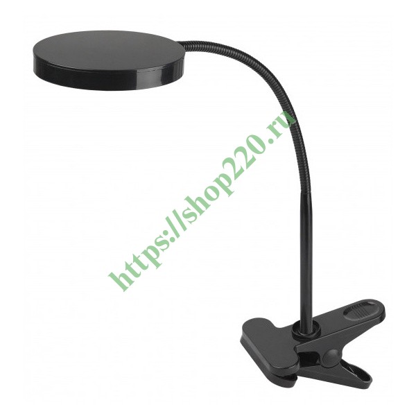 LED светильник ЭРА настольный с прищепкой и гибкой стойкой, 6 светодиодов мощностью 4 Вт питанием от сети 220 Вольт, цвет черный. Б0004477