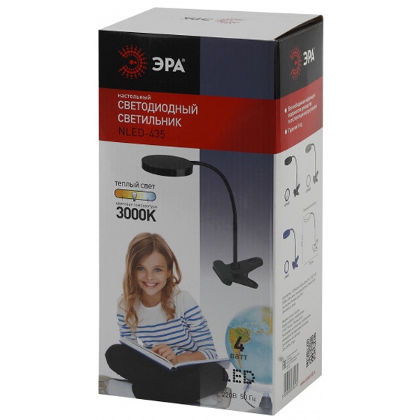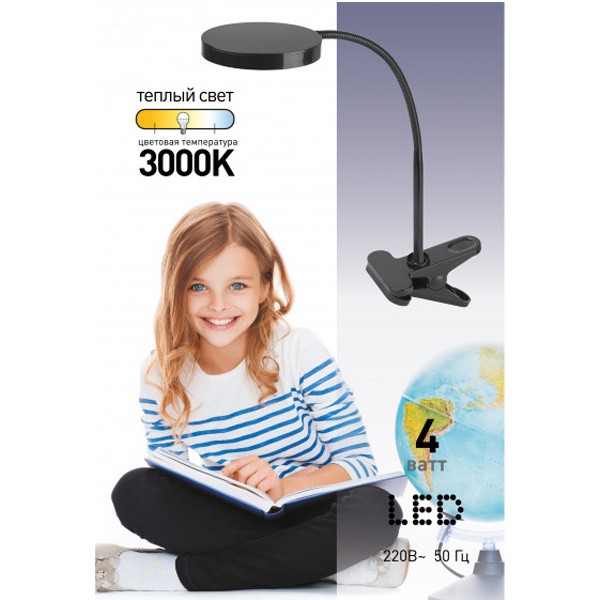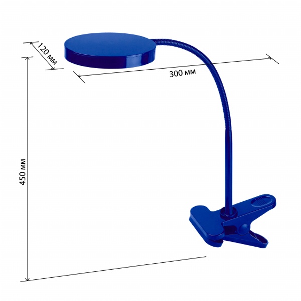 LED светильник ЭРА настольный с прищепкой и гибкой стойкой, 6 светодиодов мощностью 4 Вт питанием от сети 220 Вольт, цвет синий. Б0004479