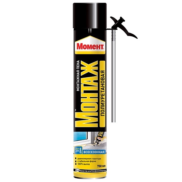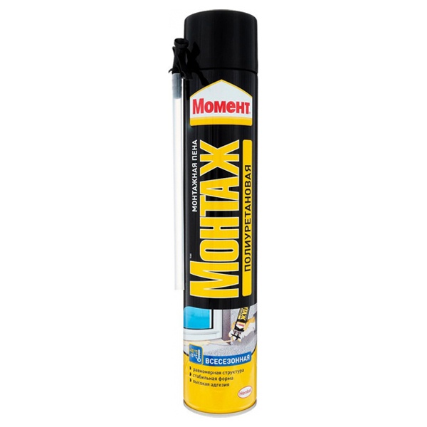 Монтажная пена Момент Монтаж Стандартная представляет собой готовую к применению однокомпонентную полиуретановую пену, затвердевающую под воздействием влажности воздуха.
