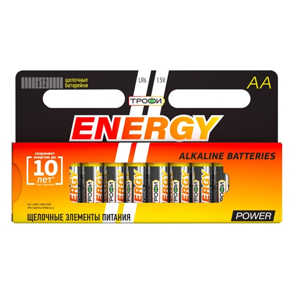 Б0009331 Батарейка AA Трофи LR6-12BL (упаковка 12шт) 5055398687833 фото 1