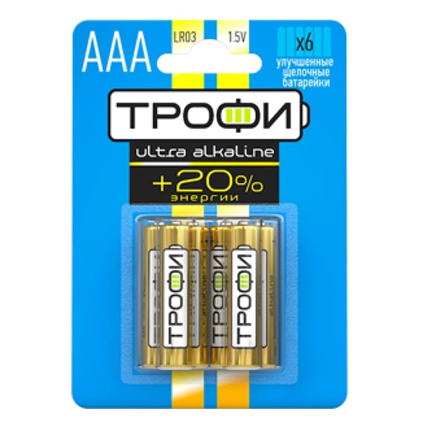 • Ультра алкалиновая батарейка AAA Трофи LR03-6BL ULTRA (упаковка 6шт) 5055945508161