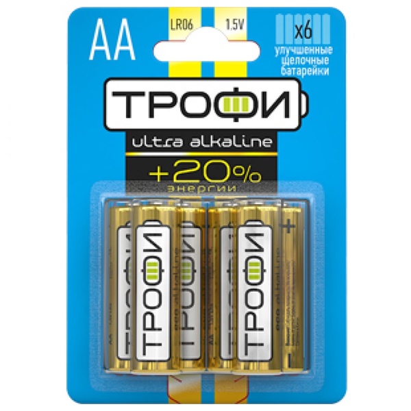 Улучшенная (ULTRA) серия щелочных батареек, обеспечивающая до 20% дополнительной работоспособности в приборах с динамичным импульсным потреблением энергии: вспышки, динамичные игрушки и др.цифровые устройства. Классический блистер на 6 батареек.