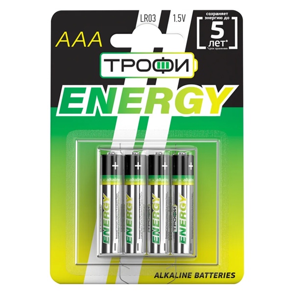 Элемент питания алкалиновый AAA/LR03-4BL Eco (блист.4шт) Трофи Б0017044